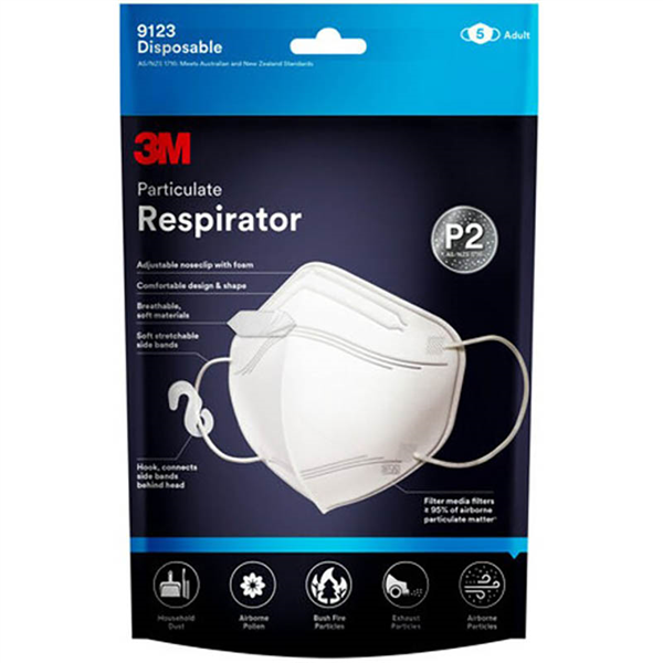 The 3M Particulate Respirator 9123 is a maintenance-free, flat fold P2 disposable respirator that is intended for use by consumers used in consumer applications (and other users where permitted by applicable regulations) to help reduce exposure to certain airborne particulate matter