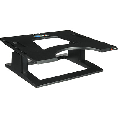 Height adjustable from 100 to 150mm in 12.7 mm increments Slots in platform help keep notebook ventilated Cable management feature keeps cords organized Also includes an adapter for the 3M DH445 Document Holder (sold separately) Compatible with docking stations Cooling slots in platform help keep notebook ventilated Weight capacity of 9kg