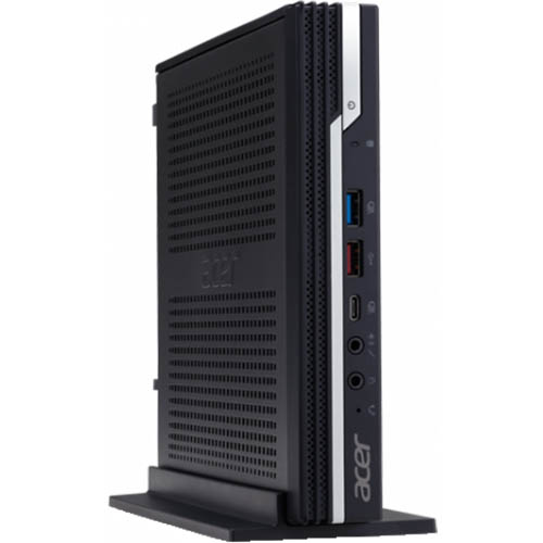 Maximum Customization - With a modern and minimalist small form factor, this space-saving and expandable mini PC is customizable with additional 1 liter add-ons for additional storage, ports, and more Optimized Performance - The Intel Core vPro processor with Intel Optane technology in combination with the up to 32GB DDR4 memory are all packed neatly in the ventilated chassis providing ultra-fast responsiveness and efficient thermal cooling VESA Mountable - Find your ideal placement with the sturdy support of a VESA mount. Conceal the entire desktop behind your monitor for an uncluttered, minimalist, and efficient office environment Impeccable Security - Achieve enterprise-level security and manageability with Intel vPro technology. Workplace data is further secured with TPM 2.0, chassis key lock, and the Kensington lock to provide physical protection to your data Plenty of Ports - Get plenty of connectivity options with the fast and stable Wi-Fi 6 (802.11ax) as well as an array of USB ports and display ports, including a USB 3.2 Gen 2 Type-C1 with simultaneous high speed data transfer and power charging while also supporting up to five different displays A Healthier PC - Know when components are not functioning properly and avoid system failures with the Acer System Health Indicator Windows 10 Home Intel Core i3-8100 Processor Integrated Graphics 4GB RAM, 128GB SSD Internal Speaker USB Keyboard and Mouse included 1 x DP, 1 x HDMI 1 x USB 3.1 Gen 2, 1 x USB Type-C 3 x USB 3.1 Gen 1, 2 x USB 2.0 1 Year Mail in Warranty