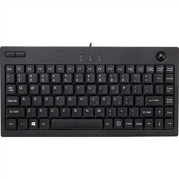 The integrated trackball and mouse buttons provide you with everything you need to navigate your screen quickly and efficiently The keyboard's trackball delivers superior precision and smooth motion with no maintenance or cleaning required This 11.75 inch Adesso Mini Trackball Keyboard is perfect for compact spaces like small office cubicles, home offices and kiosks Builtin Optical Trackball - The integrated trackball eliminates the need for a mouse and saves valuable desk space, with its 800 DPI resolution the optical trackball provides superior accuracy and smooth motion requiring minimal hand movement and no maintenance Compact Size - This keyboard is 11.75 inch wide and is designed with a Windows layout that includes an embedded numeric keypad. This keyboard is a great space saver for all environments and ideal for public workstation Quiet Membrane Keys Switch - The membrane keys offer you fast typing and a lifecycle of more than five million keystrokes