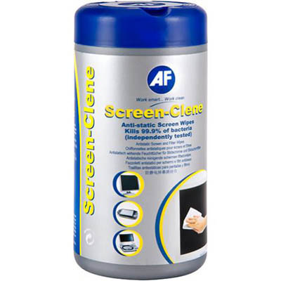Modern screens require regular cleaning to ensure they perform to their optimum and to help reduce eyestrain and tiredness AF Screen Cleaners contain an effective Biocide to kill 99.9% of germs Anti static Non flammable Non smear Contains no alcohol or harmful chemicals Screen-Clean wipes Tub of 100 wipes OEM: ASCR100T