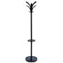 A rotating head with 6 large ABS plastic coat pegs and 3 hooks Integral umbrella stand, includes hooks to hang small umbrellas Weighted base for a perfect stability Water retainer Made from steel tube with black powder coating Self assembly required