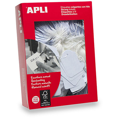 Perfect for adding a personalised touch to your items for pricing and product description Manufactured in 200g cardboard and a 100% polyester string Apli strung ticket is acid free and will retain the colour throughout its life Suitable for pricing and product description Ideal for craft or labelling retail merchandise With punched holes and string for convenient, easy attachment Acid free