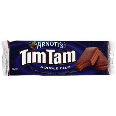 A mouth-watering combination of crunchy biscuit, creamy filling and real chocolate coating, it's easy to see why Tim Tams are Australia's most-loved chocolate biscuit Share a packet of these deliciously sweet biscuits with your friends and family today Made in Australia