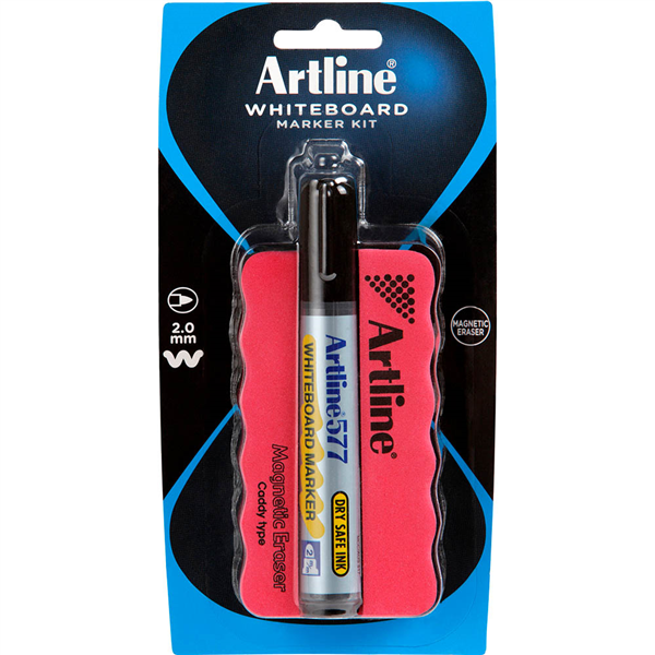 ARTLINE 577 WHITEBOARD ERASER AND MARKER KIT MAGNETIC BLACK
