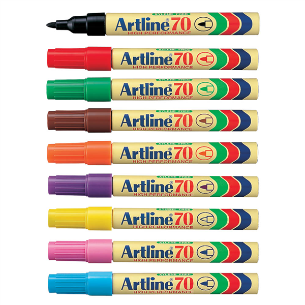 Artline's permanent markers are ideal for all types of permanent marking, from porous surfaces such as cardboard and wood, to non-porous surfaces such as steel and glass