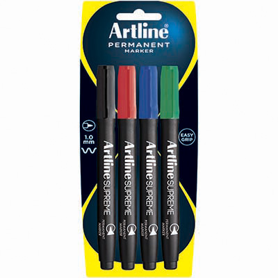 ARTLINE SUPREME PERMANENT MARKER BULLET 1.0MM ASSORTED PACK 4