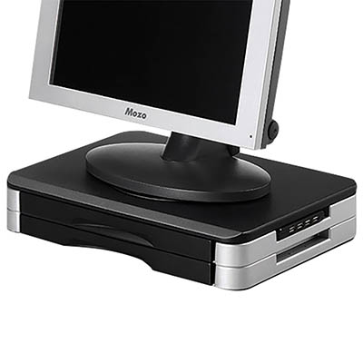 Monitor Printer stand PLUS includes 4 USB ports and 2 drawers to store notes or office supplies