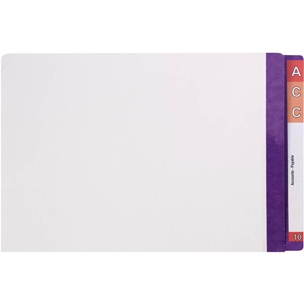 Avery Shelf Lateral Files are made out of heavy weight board so are tough enough to store even the heaviest documents! What's even better is that it is installed with a file fastener that gives you peace of mind Voila! An organised work station with no more misfiling! White shelf lateral files with purple Mylar tab, foolscap Ideal for storage of documents that cannot be hole punched Tabs are reinforced for durability Colour coded tab allows for colour coding based on departments, projects, etc Designed to save time and space