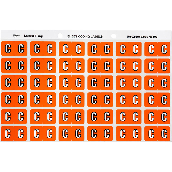 AVERY 43303 LATERAL FILE LABEL SIDE TAB C COLOUR CODE 25 X 38MM ORANGE PACK 180