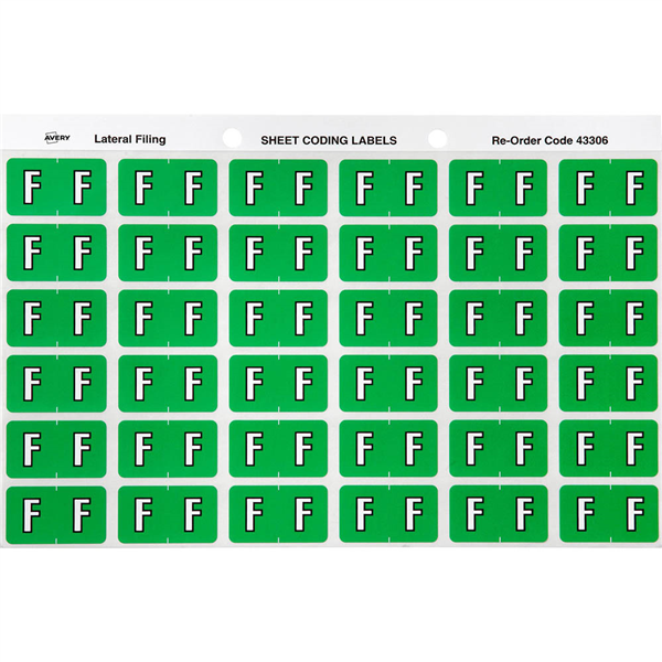 AVERY 43306 LATERAL FILE LABEL SIDE TAB F COLOUR CODE 25 X 38MM LIGHT GREEN PACK 180