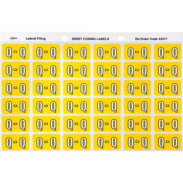 AVERY 43317 LATERAL FILE LABEL SIDE TAB Q COLOUR CODE 25 X 38MM YELLOW PACK 180
