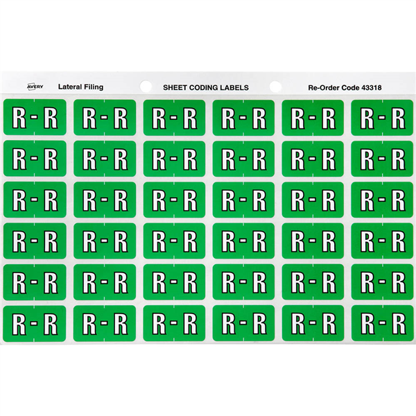 AVERY 43318 LATERAL FILE LABEL SIDE TAB R COLOUR CODE 25 X 38MM LIGHT GREEN PACK 180