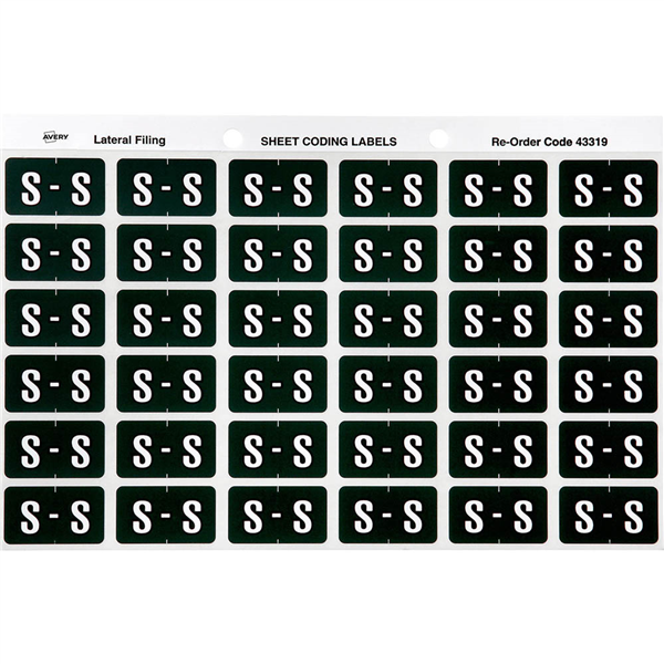 AVERY 43319 LATERAL FILE LABEL SIDE TAB S COLOUR CODE 25 X 38MM DARK GREEN PACK 180