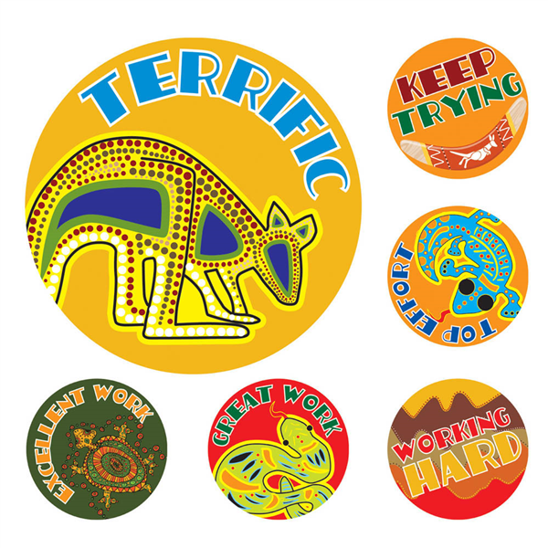Fun Australiana designs kids will feel proud to receive Packs of 96 colourful glossy stickers in six design options Bright rewards for bright little minds! Pack of 6 mixed designs Perfect for teachers rewarding school children Great for parents rewarding good behaviour at home Bright, colourful designs that kids will aspire to collect