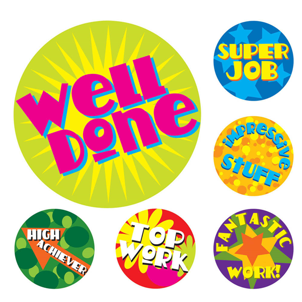 Fun bold patterned designs kids will feel proud to receive Packs of 96 colourful glossy stickers in six design options Bright rewards for bright little minds! Pack of 6 mixed designs Perfect for teachers rewarding school children Great for parents rewarding good behaviour at home Bright, colourful designs that kids will aspire to collect