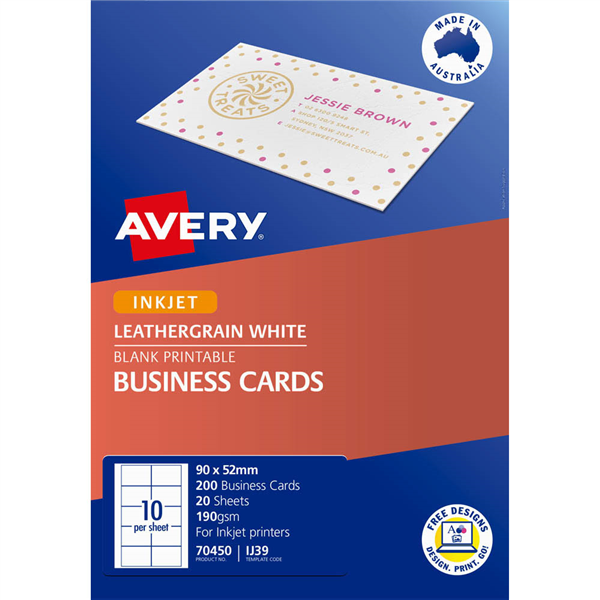 AVERY 70450 IJ39 LEATHERGRAIN BUSINESS CARD 200GSM 90 X 52MM WHITE PACK 200