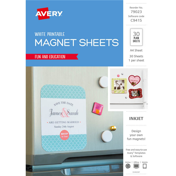 AVERY 79023 C9415 INSPIRED FRIDGE MAGNET A4 PACK 30