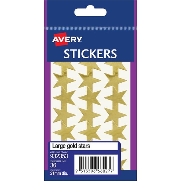 AVERY 932353 MERIT STAR STICKERS 21MM GOLD PACK 36