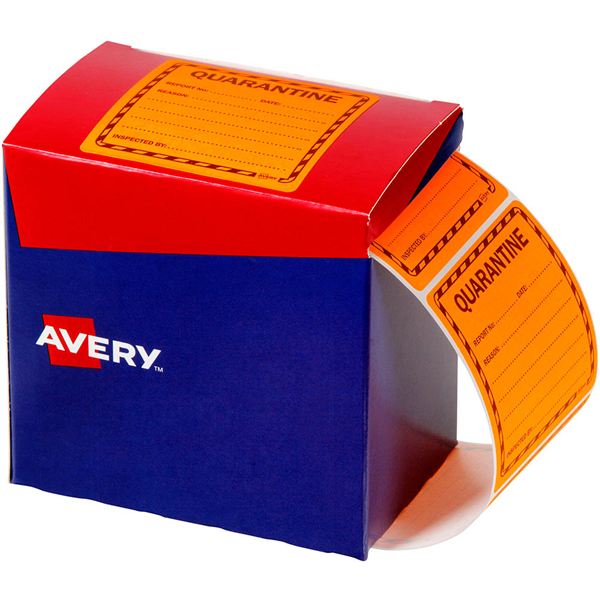 AVERY 932621 MESSAGE LABEL QUARANTINE 75 X 74.2MM FLUORO ORANGE PACK 1000