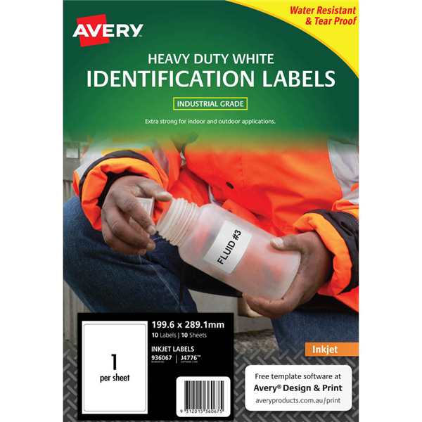 AVERY 936067 J4776 HEAVY DUTY INKJET LABELS 1UP WHITE PACK 10