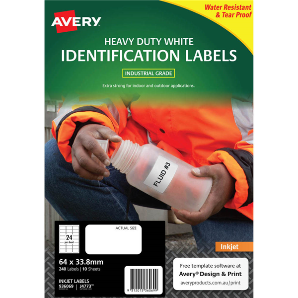 AVERY 936069 J4773 HEAVY DUTY INKJET LABELS 24UP WHITE PACK 10