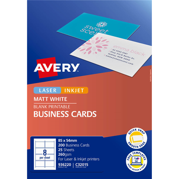 AVERY 936220 C32015 QUICK AND CLEAN BUSINESS CARDS INKJET MATT 250GSM PACK 200