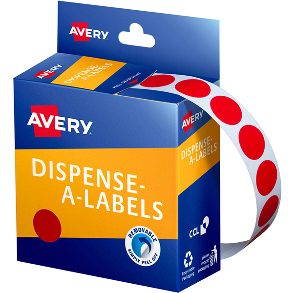 AVERY 937235 ROUND LABEL DISPENSER 14MM RED BOX 1050