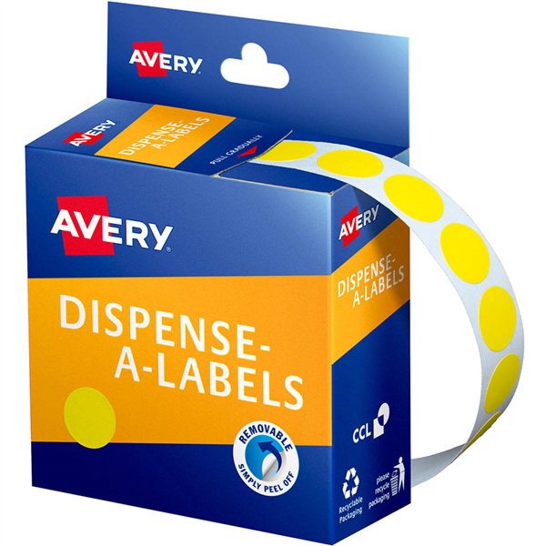 AVERY 937239 ROUND LABEL DISPENSER 14MM YELLOW BOX 1050
