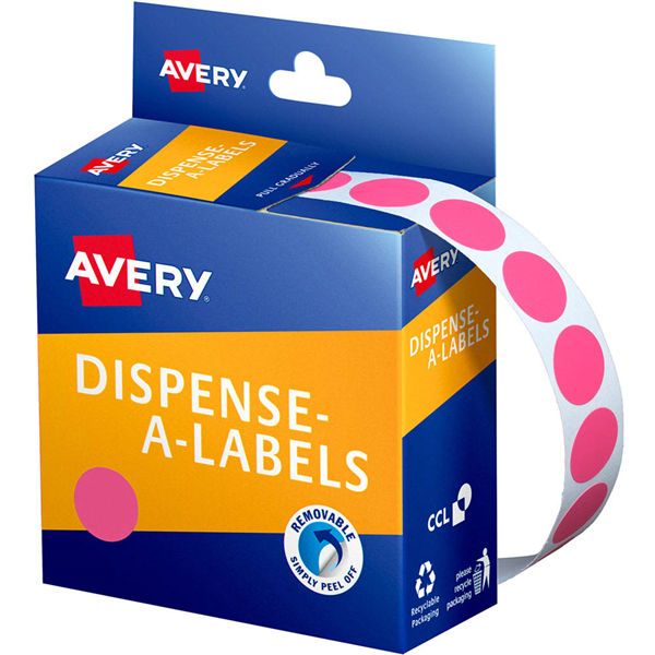 AVERY 937241 ROUND LABEL DISPENSER 14MM PINK BOX 1050