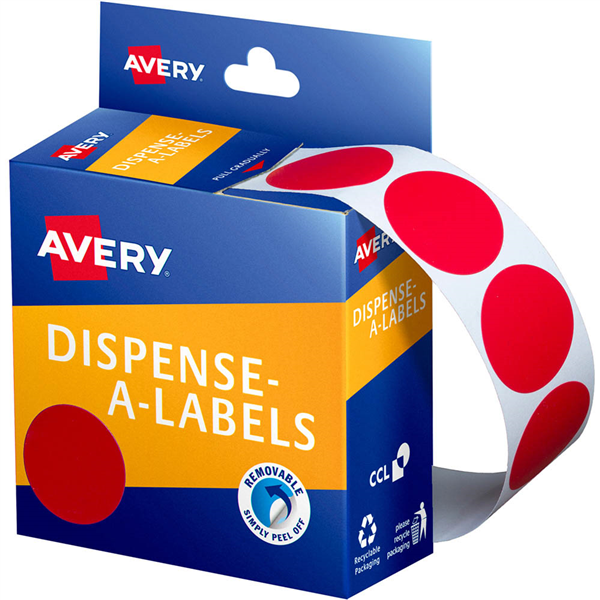 AVERY 937243 ROUND LABEL DISPENSER 24MM RED BOX 500
