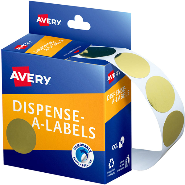 AVERY 937271 ROUND LABEL DISPENSER 24MM GOLD BOX 250
