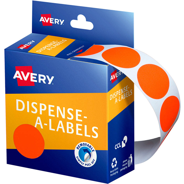 AVERY 937299 ROUND LABEL DISPENSER 24MM FLUORO RED BOX 350