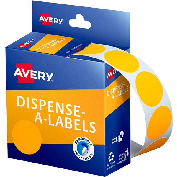 AVERY 937301 ROUND LABEL DISPENSER 24MM FLUORO ORANGE BOX 350