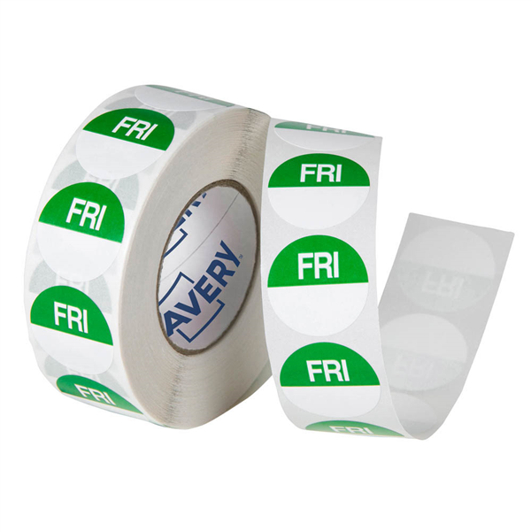 AVERY 937333 REMOVABLE DAY LABEL FRIDAY 24MM GREEN/WHITE BOX 1000