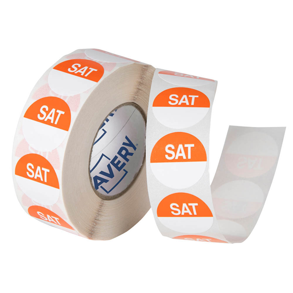 AVERY 937334 REMOVABLE DAY LABEL SATURDAY 24MM ORANGE/WHITE BOX 1000