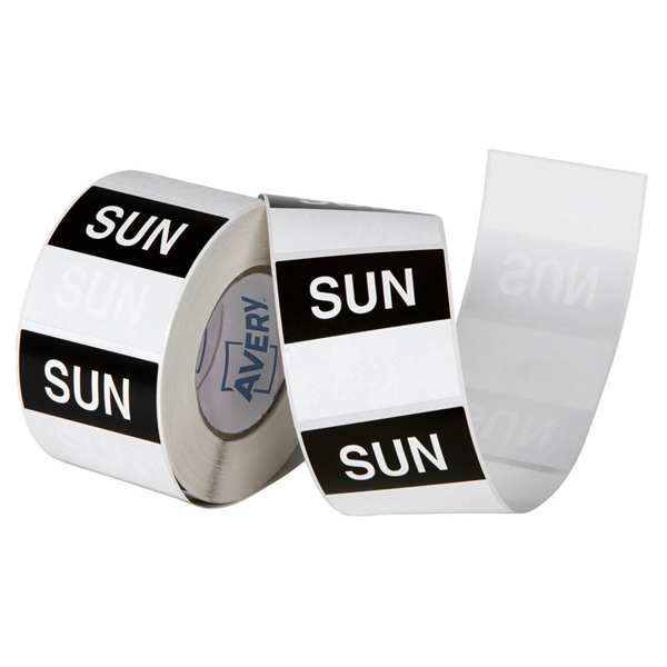 AVERY 937342 REMOVABLE DAY LABEL SUNDAY 40 X 40MM BLACK/WHITE BOX 500