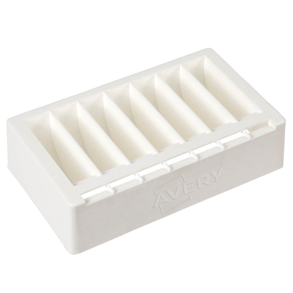 The durable plastic dispenser provides an ideal solution to store and dispense the Avery range of 24mm round day labels