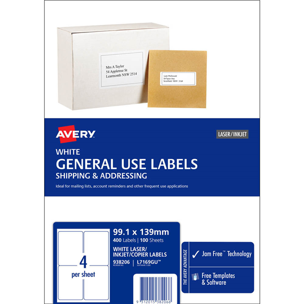 They can be used with black and white laser printers and copiers and also with all inkjet printers They deliver good quality results and it takes no time to design and print them using the free Avery software and templates Now supported by Microsoft Word and Avery software at www.averyproducts.com.au Now with Jam Free Technology for perfect labels every time Ideal for mailing lists, account reminders and other frequent use applications Suited to medium speed, black and white laser printers and photocopiers Labels made with paper from well-managed forests