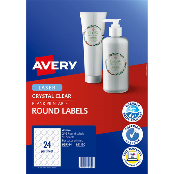 They are truly multi-functional round labels: for organising your pantry, garage and home office, or for professional, glossy labelling The uses are virtually limitless: try them on glass bottles and jars, plasticware, boxes, files, invitations, cards, gifts and craft items Use your imagination! Permanent glossy round labels for use on virtually any surface: glass, polished surfaces, plastics, invitations or card Developed for laser printers and guaranteed Jam Free Durable (oil, dirt, splash and tear proof) and permanent For use in your kitchen, garage, home office, or for professional-looking round labels Customise your labels with free Avery software and templates available at averyproducts.com.au