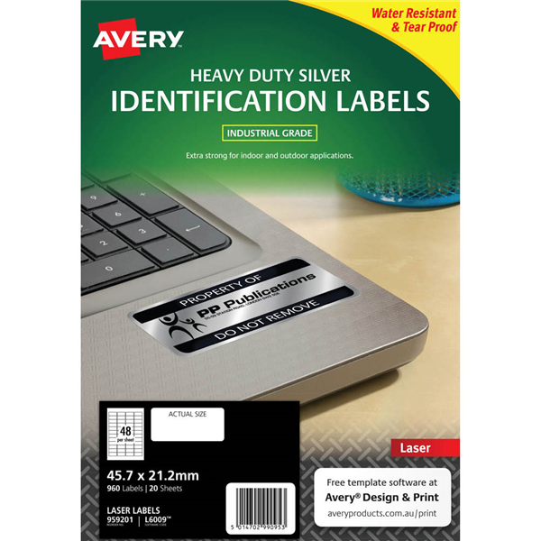 AVERY 959201 L6009 HEAVY DUTY LASER LABELS 48UP SILVER PACK 20