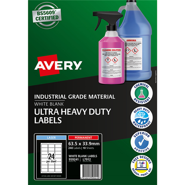 AVERY 959241 ULTRA-RESISTANT OUTDOOR LABELS 63.5 X 33.9MM WHITE PACK 10