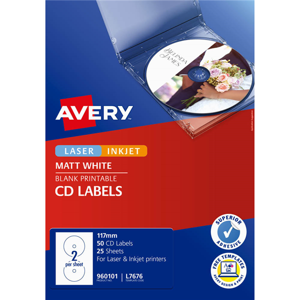 With free templates and designs available at averyrpoducts.com.au\print, you can add images, graphics and sharp clear text, then print from your inkjet or laser printer Suitable for use on CDs Create truly unique, professional CD labels for your projects Supported by free and easy-to-use Avery templates available at averyproudct.com.au\print For laser and inkjet printers