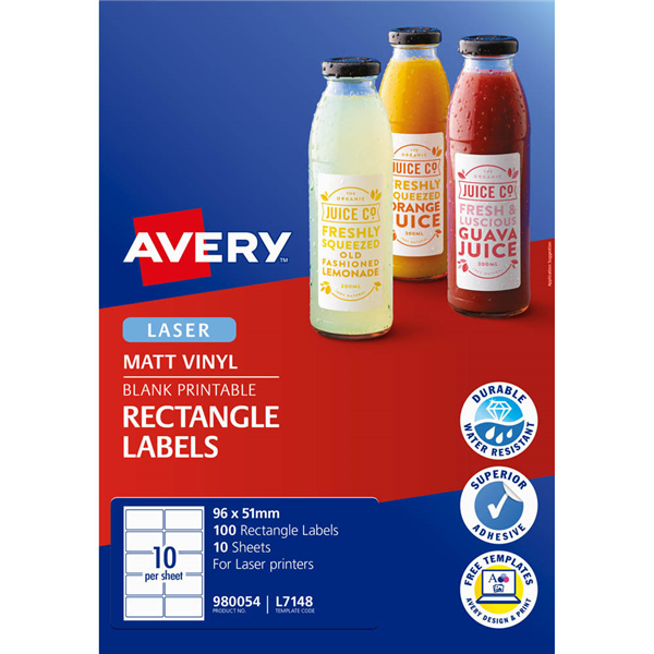 AVERY 980054 L7148 DURABLE RECTANGULAR LABELS LASER 10UP MATT VINYL PACK 100