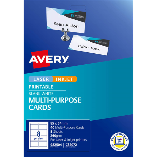 Made from matt white premium quality material and featuring Quick and Clean technology for a smooth edge professional finish, these cards are the perfect way to personalise your special occasion Customise your placecards to match your special event theme and colour scheme by choosing from our range of pre-designed templates or create your own unique design Complement your Placecards with customised Invitations, Postcards, Gift Tags and Labels its easy and affordable with free Avery templates and software Premium quality matt white card to display your individual designs Print-to-the-edge for a full colour, professional finish Print-shop quality, smooth edge cards Save money by only printing the number of cards you need Create your ideal theme with our free software and templates