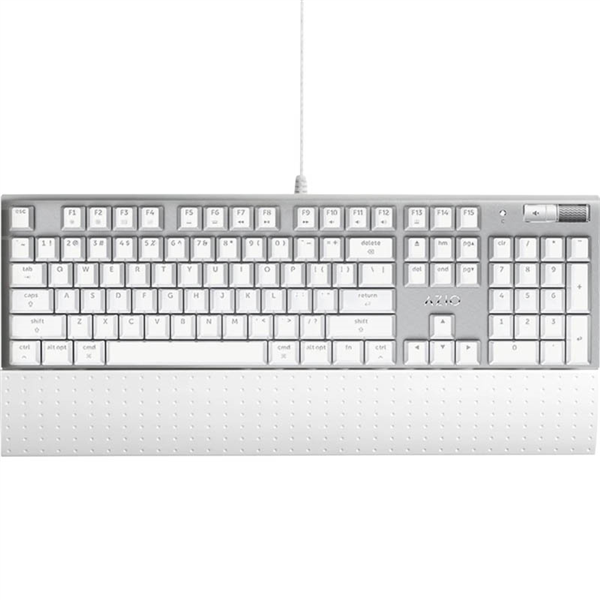The bead-blasted aluminum finish exudes elegance while underlining Apple's minimalist aesthetic. Function keys are implemented for quick access to a variety of Mac features including Mission Control and Launchpad Tactile and non-clicky in design, the MK MAC will change the way you type on a Mac Mechanical Keys for Mac - The MK Mac USB Keyboard is a mechanical keyboard made exclusively for Mac, with Kailh Brown switches that guarantee precise travel distance and tactile feedback with every key Premium Craftsmanship - Designed with top grade aluminum, a diamond cut logo, and a bead-blasted finish, the MK Mac USB is a highly durable and minimal keyboard built to perfectly match with your Mac True Mac Format - Whether you need the Expose, Dashboard, Media Control, or Brightness Control, the keyboard layout is 100% designed for Mac OS so there are no compromises to what you're familiar with Let There be Sound - Combining convenience and accessibility, the dedicated on-board volume adjustment wheel and mute button gives you the command of sound whenever you need it. Easily adjust the volume without needing to look for the command buttons on your screen Every Stroke Counts - The MK Mac USB allows you to press six keys at once with successful input. Type with confidence with every stroke, every time. Experience precise travel distance and haptic feedback with every key White Backlight - Designed with white backlight that illuminates and helps you see clearly at night Comfortable Palm Rest - The convenient snap-on palm rest with matte UV coating provides ergonomic functionality and durability. Its inner-curve design allows the palm rest to fit the keyboard even with the addition of a stand Plug & Play - Simply plug in the USB cable into any available USB slot then type away! The driver will automatically download once the USB is plugged in for the first time