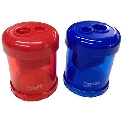 BANTEX CANISTER PENCIL SHARPENER 2-HOLE BLUE/RED
