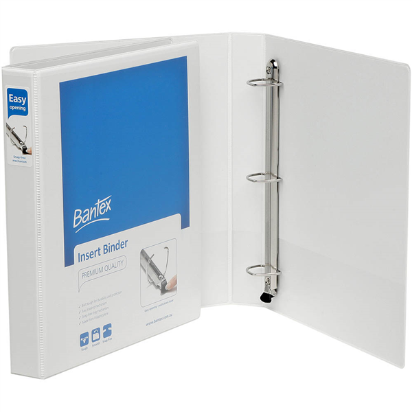 BANTEX PREMIUM PUSH LEVER INSERT RING BINDER PP 3R 25MM A4 WHITE