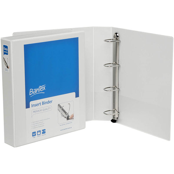 BANTEX PREMIUM PUSH LEVER INSERT RING BINDER PP 4R 38MM A4 WHITE