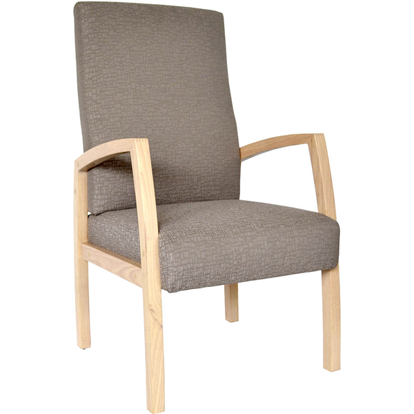 Featuring a timeless design, built for strength and durability Suitable for use in healthcare and aged car facilities The maple colour wood finish sets off a modern fresh look Strong solid wood white maple coloured frame Generous and supportive seat and frame Heavy duty 2 pack polyurethane lacquer Quality high density foam Gin Rummy Gravel upholstery Adjustable height leveling glides 160kg heavy duty weight rating
